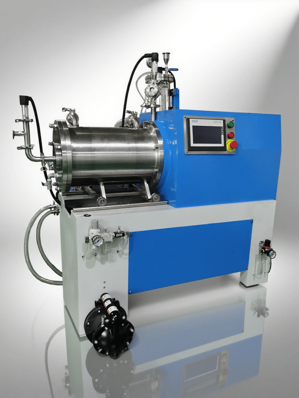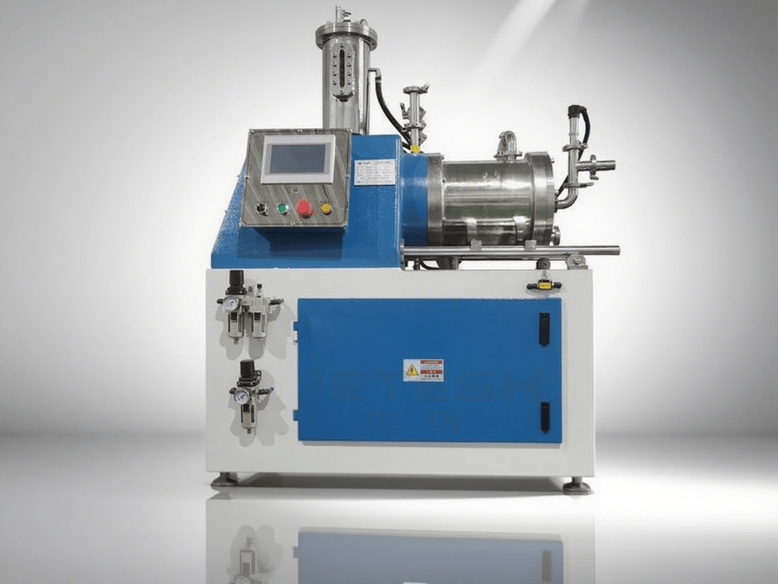 盤片式臥式砂磨機盤片式微米研磨機,是一款可將物料研磨至微米級的濕法研磨設備,效率快的雙冷卻系統以及微間隙離心分離系統,使得物料不會因分離器堵塞而造成出料不暢,濾網的使用周期大大 -